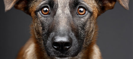 Charming Belgian Malinois Dog with Expressive Eyes Posing for a Stunning Portrait on Gray Background
