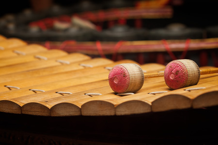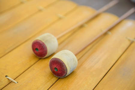 Wooden soprano xylophone, the Thai music instrument ( select focus at drumstick )