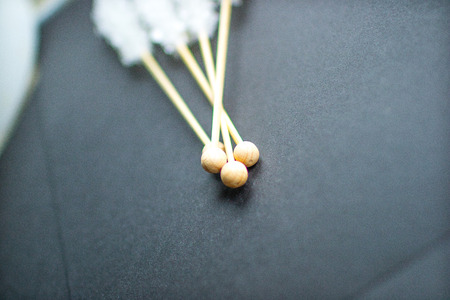 Detail of timpani mallets in the left side on a cream background.
