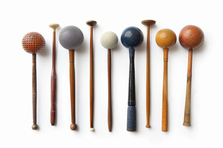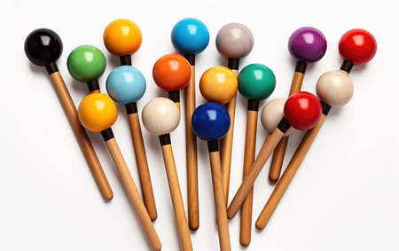 Detail of xylophone mallets in the right side white space box on a white background.