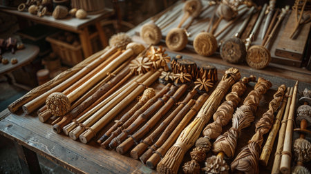 This image features beautifully handcrafted wooden sticks, highlighting intricate grain patterns and smooth finishes, perfect for artistic, decorative, or crafting uses.