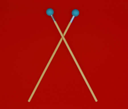 Crossed xylophone mallets on a red background.