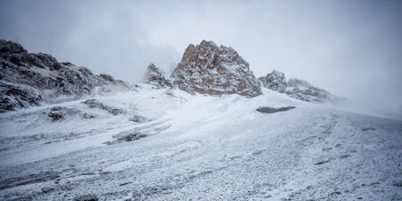 Mountain landscape with snow-capped peaks in Dolomites, Italy
