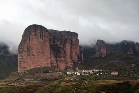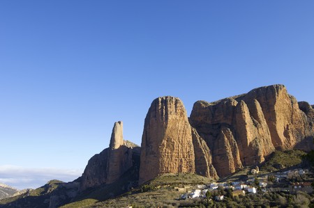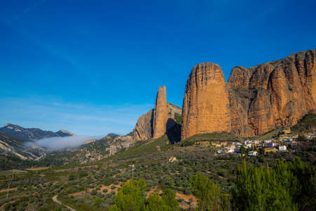 Rock spires known as Mallos de Riglos in Huesca, Aragon, Spain