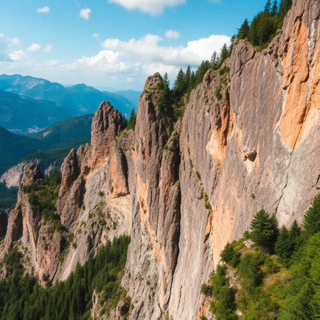 experience the breathtaking beauty of mountain cliffs through our stunning landscape photography collection, perfect for backgrounds. our high-quality images capture the essence of nature's majesty and will transport you to a world of wonder and awe. ai generated