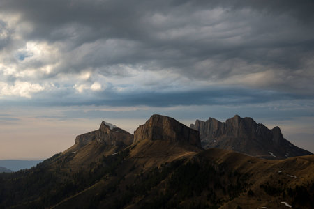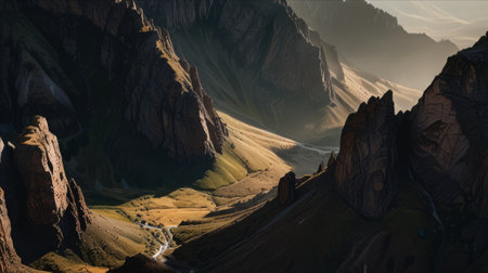Majestic Mountain Peaks Bathed in Golden Light, Dramatic Landscape View