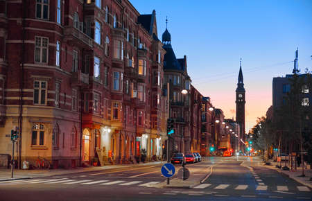 Denmark, Copenhagen - Jule 1, 2018: beautiful old residential building at night
