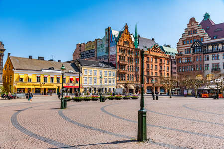 Downtown Malmo with old and modern buildings, Sweden.
