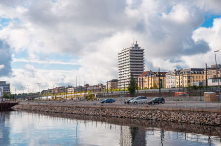 MALMO, SWEDEN - MAY 29, 2016: Urban sea coast with yacht harbor in Malmo, on May 29, Sweden. Malmo is the third largest city in Sweden with almost halv milion citizens in the urban area.