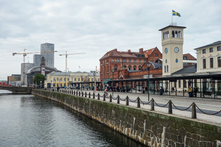 Malmo - October 22, 2017: Canals in the Historic center of Malmo, Sweden