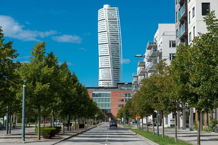 Malmo. Sweden. July 29, 2019: Turning Torso, a beautiful skyscraper in urban architecture. Swedish architecture sights
