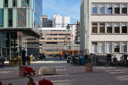 Malmö, Sweden - July 11, 2018: The entrance to Malmö University Orkanen in the downtown area of the city. Seen on a bright summer day.