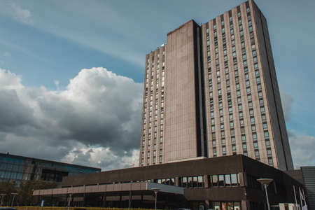 LEEDS, UNITED KINGDOM - Jun 02, 2018: Dull day over Broadcasting Tower which is a university building in Broadcasting Place in Woodhouse Lane, Leeds, England.