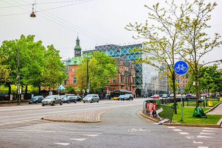 Copenhagen, Denmark - May, 2019: Street life in Copenhagen. Morning in the city center.