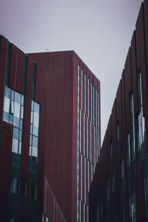 Gothenburg, Sweden - June 30, 2019: The Kuggen Building is a gear-shaped building that houses Chalmers University of Technology. Building is faced with six different shades of red and one green.