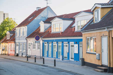 Viborg, Denmark, July 2018: Small colorful Scandinavian houses in Denmark