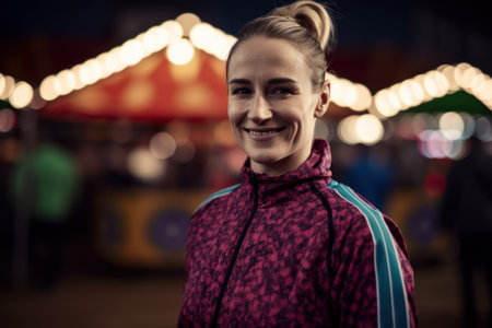 Portrait of a smiling young woman in sportswear at the fair