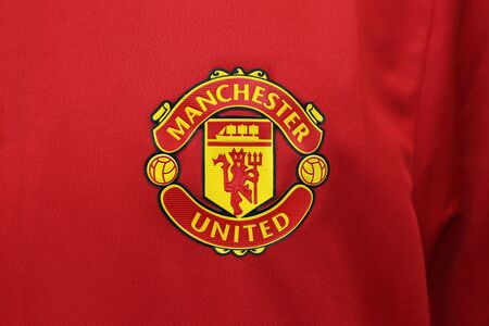 BANGKOK, THAILAND - JULY 25, 2016: The Logo of Manchester United on Football Jersey on July 25,2016 in Bangkok Thailand.