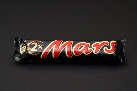 Lviv, Ukraine - February 14, 2024 : Mars chocolate bar on black
