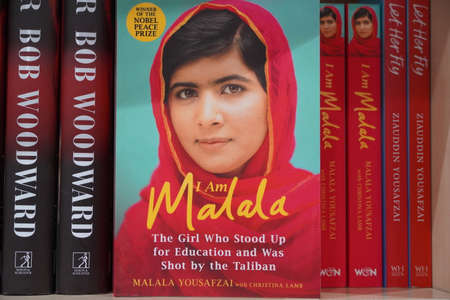 Dubai UAE December 2019 Book of Malala Yousafzai Pakistani activist for female education and the youngest Nobel Prize laureate on the book store.