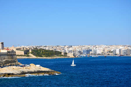Valletta seafront skyline view as seen from Sliema shoreline, Malta