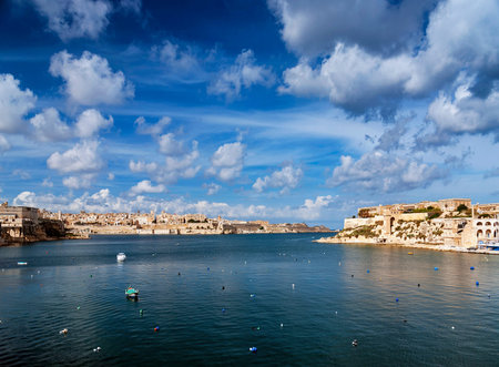 Grand Harbour in the evening in Malta, view from Valletta side.
