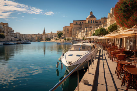 Historical Square in Valletta, Malta, overlooking the sea., generative AI