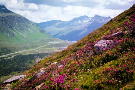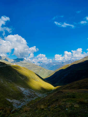 The mountains of Passo Gavia Alps, Lombardy, Italy at summer