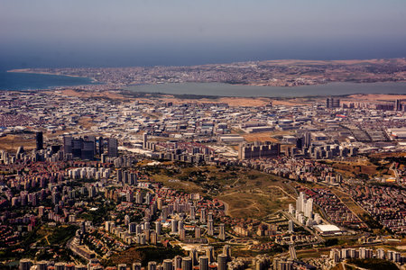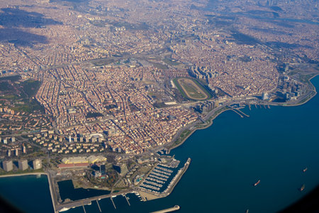 Aerial view of Istanbul city from airplane