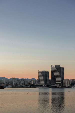 View from the Black Sea on the coastline of the port city