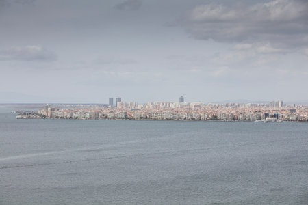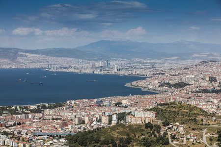 Landscape of the Coast of Izmir and Aegean Sea seen from the old elevator of Izmir