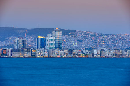 Panoramic izmir city photo taken with night long exposure technique, with plenty of light