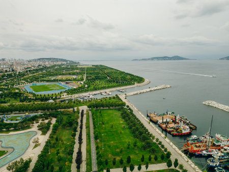 Istanbul, Turkey - Aerial view of park in Maltepe district on the Marmara Sea coast of the Asian side. High quality photo