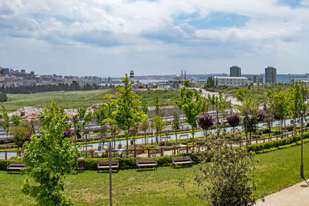 Halkali, istanbul, Turkey- May 20,2021.Spring view from Halkali public park with its nature, green areas and architectural beauties in istanbul.