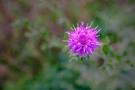 Purple thistle flower on a green background with bokeh