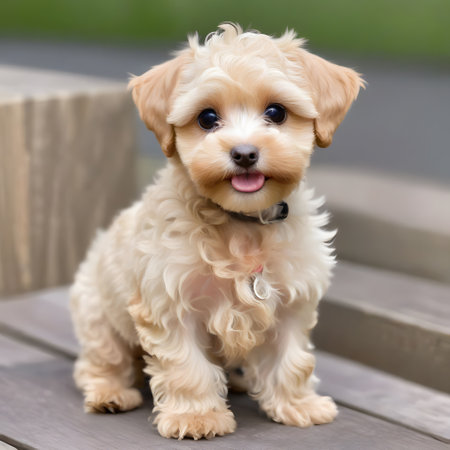 Adorable golden puppy with fluffy coat, showcasing charming personality and pure innocence.