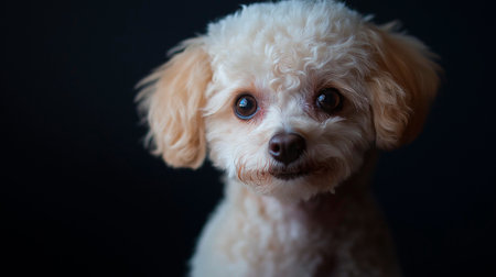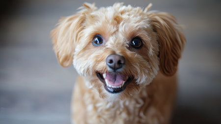 High-resolution close-up of a dog with a shiny, well-groomed coat and a happy expression, showcasing its adorable features in a clean, simple background