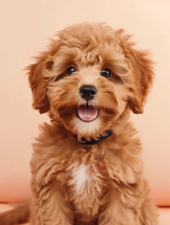 Maltipoo dog. Adorable puppy. Charming brown puppy maltipoo
