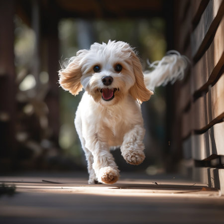 An AI generated illustration of a cute Cavapoo dog running with a blurry background