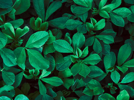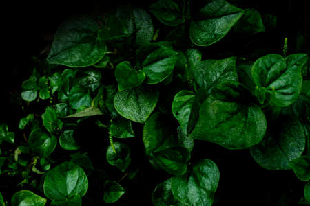 Dark green leaves pattern background, Natural background and wallpaper. Black tropical abstract green grass texture. Ornamental plant in the garden. Eco wall. Organic natural background