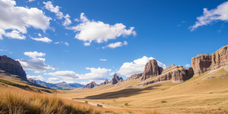 Panoramic view of the Bermamyt Plateau in the Karachay-Cherkessia Republic, Russia