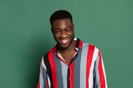 Close-up portrait of young african man posing isolated on studio background with copyspace for ad.