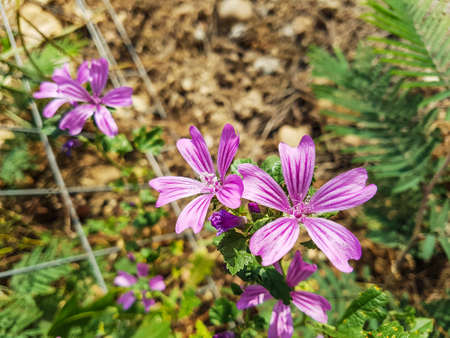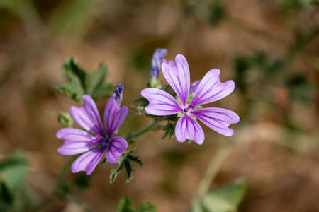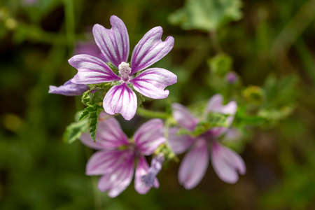Beautiful purple flowers of common mallow (Malva sylvestris)