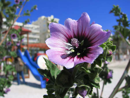 Violet Common Mallow flower. Its Latin name is Malva sylvestris.