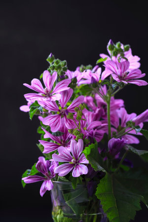 Isolated mallow flower on black background. Springtime
