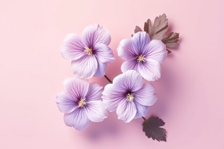 pink cranesbill geraniums with green leaf.