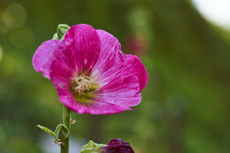 pink Hollyhock flower in the backyard