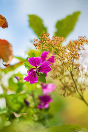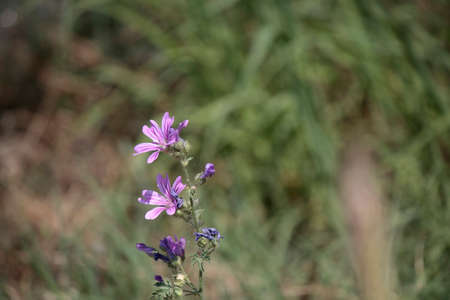 Purple mallow flower in natural background. Concept of spring.
