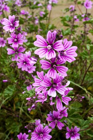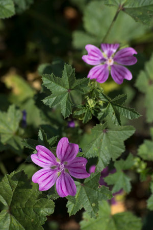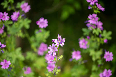 Beautiful purple flowers of common mallow (Malva sylvestris)