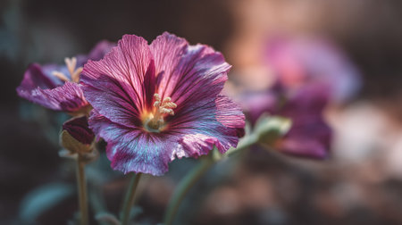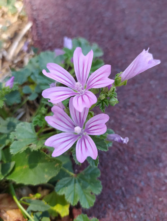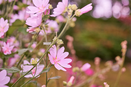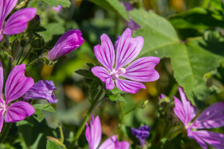 mallow plant flowers close up view with natural daylight